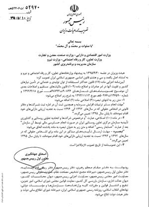 «مهلت انجام سایر ترتیبات افزایش سرمایه و همچنین ثبت آن در اداره ثبت شرکت ه و دفاتر قانونی در اشخاص حقوقی که در سال های 1392 الی 1394 نسبت به تجدید ارزیابی دارایی های خود اقدام نموده اند، تا پایان سال 1395 تعیین می گردد.»